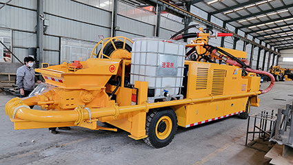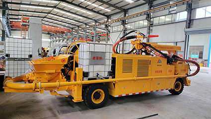5.在正常噴射施工中,電動(dòng)機(jī)驅(qū)動(dòng)它馳騁在工地上。即便在電力中斷的情況下,柴油機(jī)也能短暫地驅(qū)動(dòng)泵送系統(tǒng),讓噴射機(jī)械手以較慢的速度進(jìn)行各種操作,確保施工的連續(xù)性。